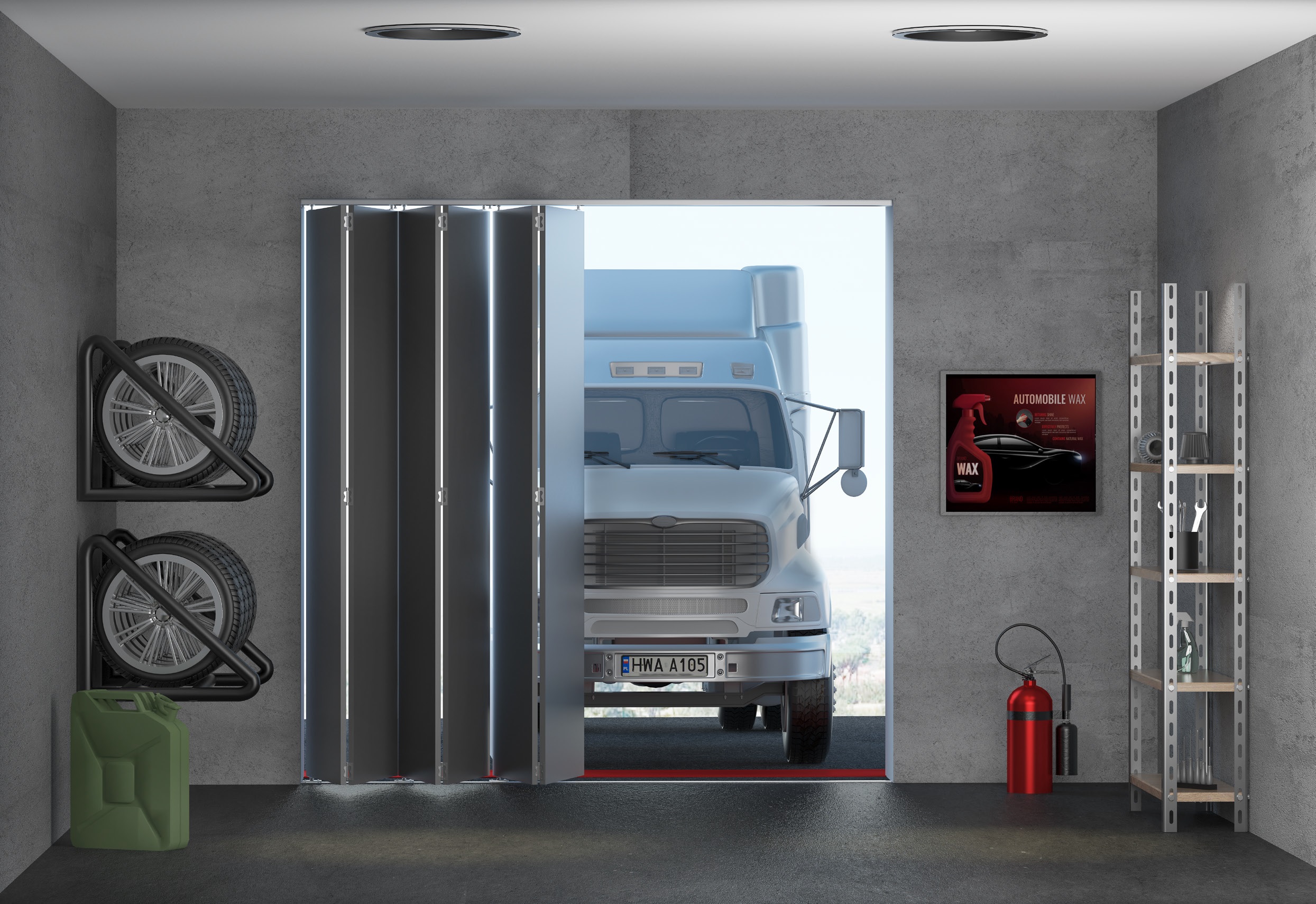 MANTION SPORTUB 500 to system do drzwi i bram składanych o jednakowej szerokości skrzydeł. Doskonale sprawdzi się do zastosowań wewnątrz i na zewnątrz hangarów, magazynów, hal. Zapewnia pełne otwarcie drzwi.