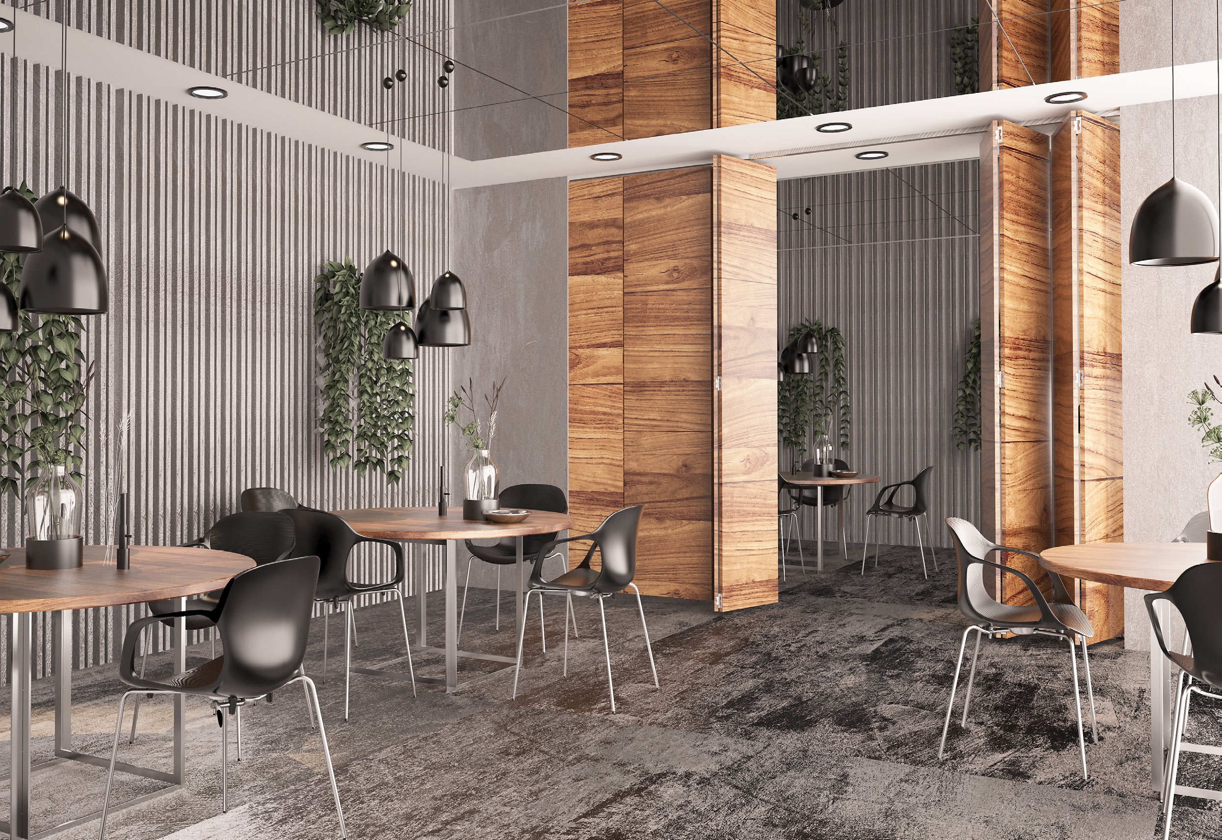 MANTION SPORTUB 600 to system do ścianek składanych z jednym wąskim skrzydłem drzwi. Idealnie sprawdzi się do podziału dużych pomieszczeń (restauracje, sale wykładowe, sale konferencyjne).