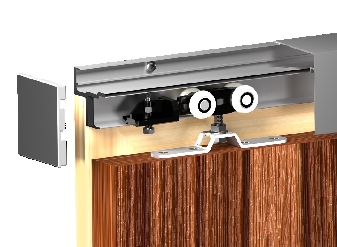 MANTION HERKULES TRIM to system do przejściowych drzwi przesuwnych dedykowany do istniejących rozwiązań wyposażonych w ościeżnicę z opaską maskującą lub listwą cokołową. Idealny w sytuacjach, w których ze względu na konieczność zachowania zwiększonego dystansu pomiędzy płaszczyzną drzwi a ścianą, montaż klasycznych rozwiązań nie jest możliwy. Jednoczęściowa prowadnica aluminiowa gwarantuje szybki i łatwy montaż, bez konieczności użycia niestandardowych narzędzi. Zastosowanie aluminiowej maskownicy powoduje, że mechanizm jezdny jest niewidoczny.