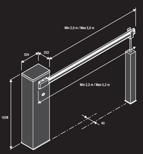 - Kompletny szlaban drogowy. Zestaw zawiera: jednostkę centralną z sprężynami i uchwytem ramienia; ramię 5 m; łącznik ramienia.