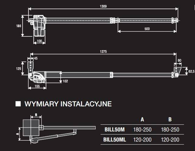 Napęd do bram skrzydłowych BENINCA BILL50M - uniwersalne wymiary