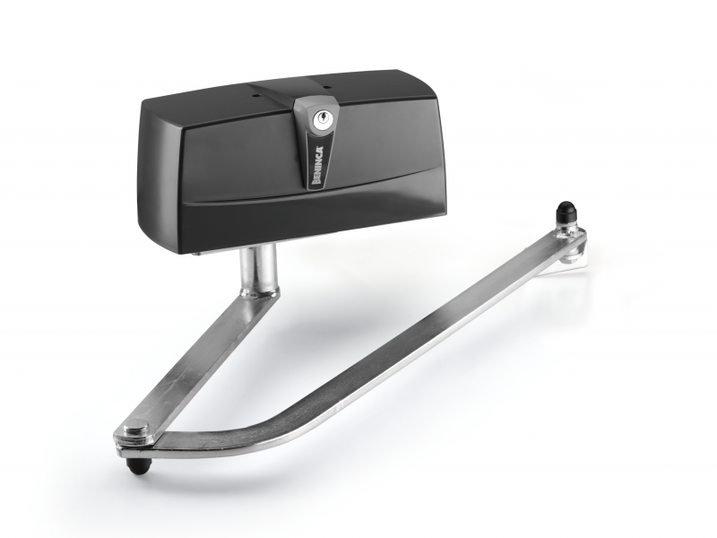 • Napęd do bram skrzydłowych z ramieniem łamanym, przeznaczony do szerokich słupków.