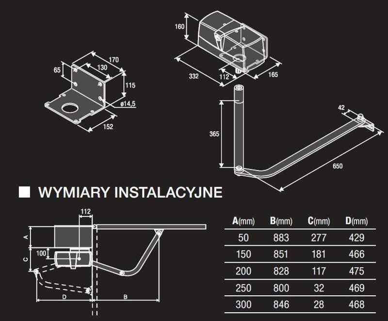 Zestaw do bram skrzydłowych BENINCA PREMIER KPR.PM to nienawrotny siłownik elektromechaniczny przeznaczony do szerokich słupków. Posiada mocne ramię przegubowe wykonane ze stali ocynkowanej galwanicznie, co zapewnia trwałość i odporność na warunki atmosferyczne.