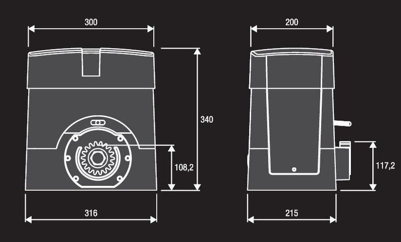 - Napęd do bramy przesuwnej do użytku rezydencyjnego lub przemysłowego, brama do 1700 kg.