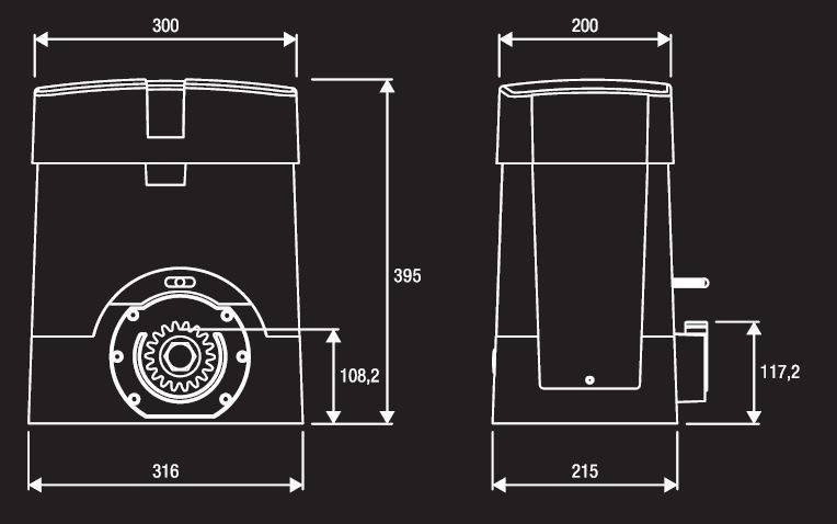 - Cykl pracy: 80% (przy temperaturze +50°C i bramie o ciężarze 2000 kg, cykl pracy wynosi do 60%)