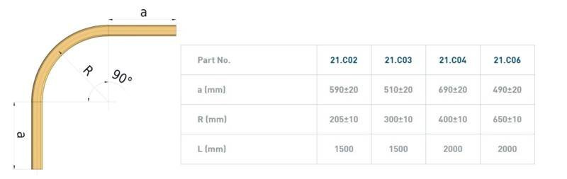 Łuk szyny nośnej 90° NIKO 21.C06, promień 650±10 mm, odcinki proste 490±20 mm, ocynk