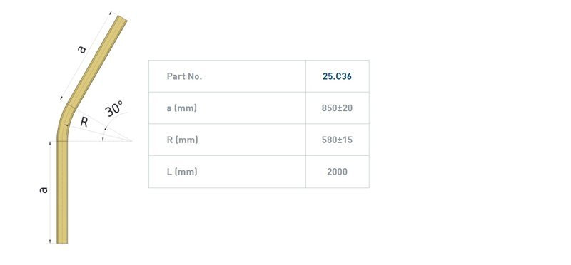 Łuk szyny nośnej 30° NIKO 25.C36, promień 580±15 mm, odcinki proste 850±20 mm, ocynk