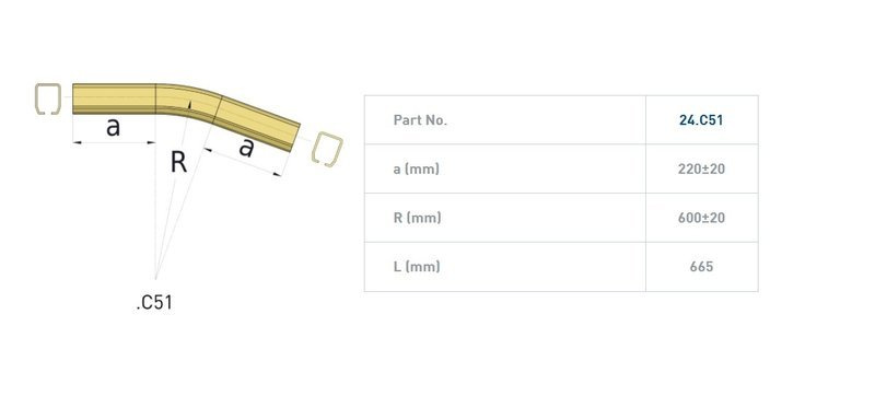 Łuk pionowy 20° NIKO 24.C51, promień 600±20 mm, odcinki proste 220±20 mm, ocynk