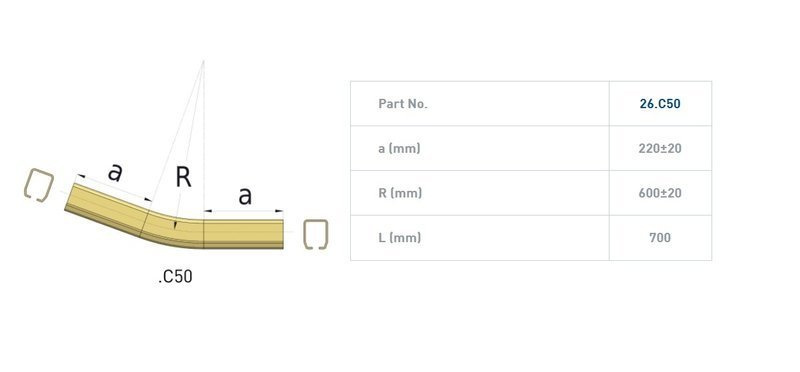 Łuk pionowy 20° NIKO 26.C50, promień 600±20 mm, odcinki proste 220±20 mm, ocynk
