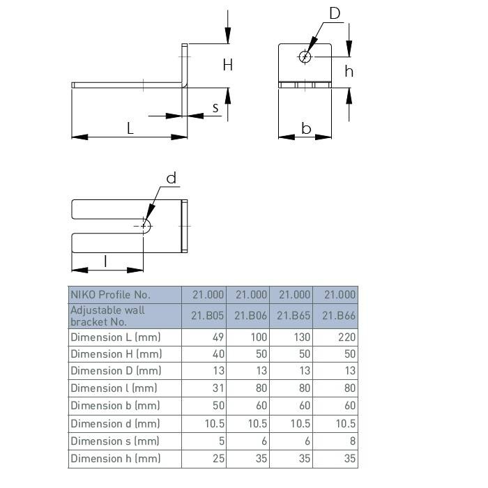 - Przeznaczony do montażu ściennego pojedynczych szyn podwieszanych NIKO serii 21 z możliwością regulacji pionowej i poziomej.