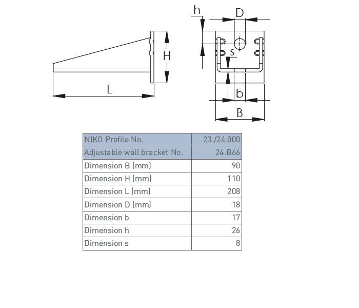 Regulowany potrójny uchwyt ścienny do szyny NIKO 24.B66, ocynk