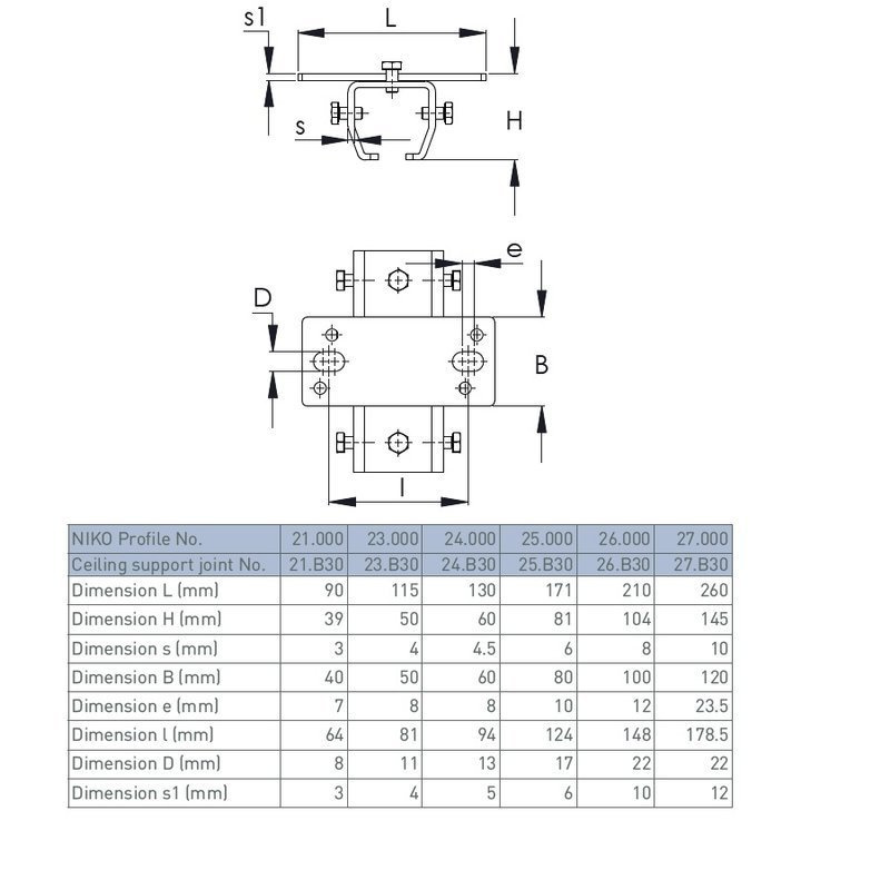 - Przeznaczony do łączenia sufitowego szyn podwieszanych NIKO serii 26.