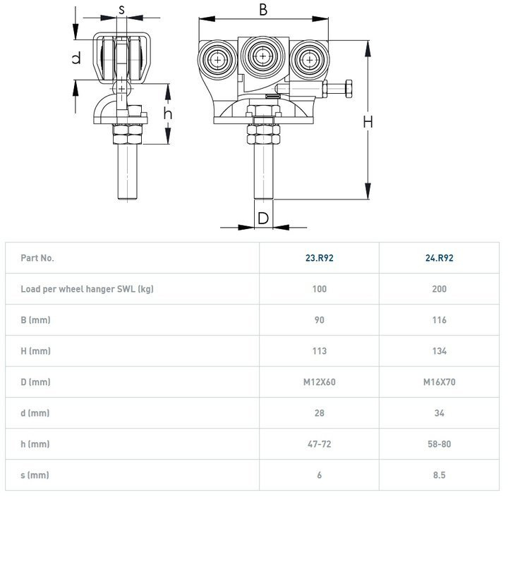 - Nośność 1 wózka (SWL) 200 kg.