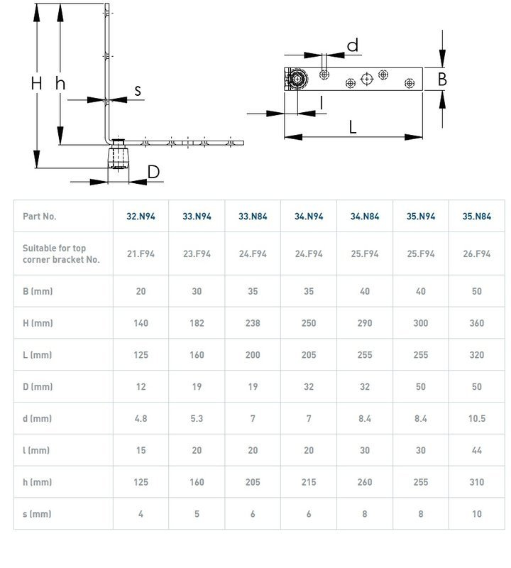 Dolny narożnik do skrzydeł drewnianych NIKO 35.N84, ocynk, doskonale sprawdzi się w systemach podwieszanych NIKO. Jego solidna konstrukcja zapewnia bezpieczne zawieszenie i stabilność całej konstrukcji.