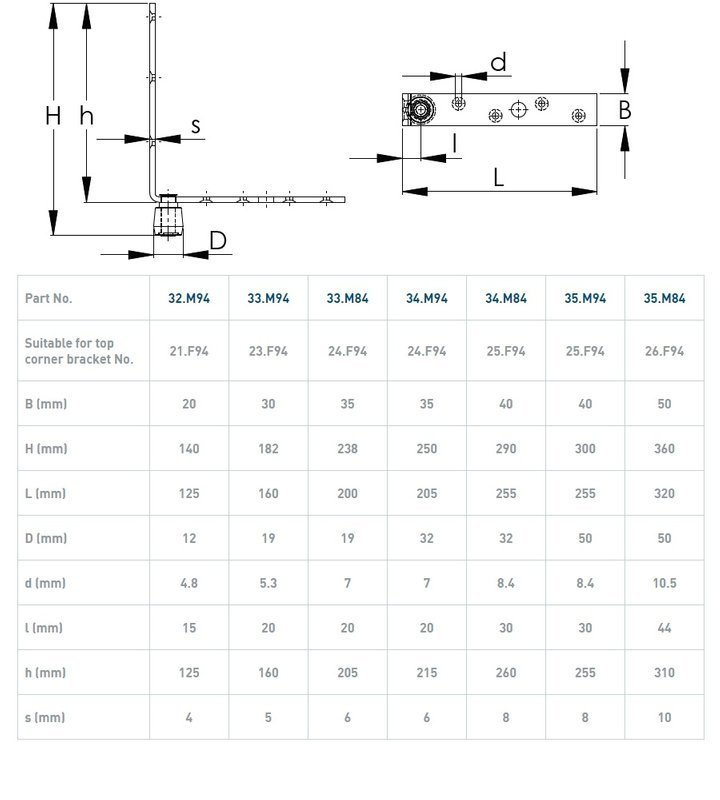 Dolny narożnik do skrzydeł drewnianych NIKO 35.M84, ocynk