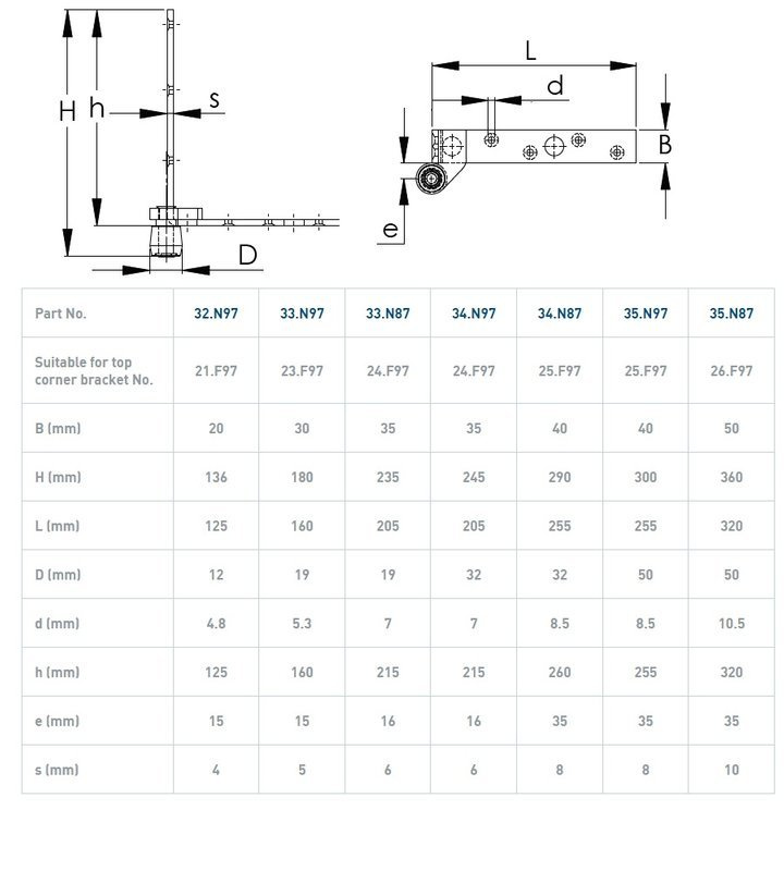 Dolny narożnik do skrzydeł drewnianych NIKO 34.N97, ocynk doskonale sprawdzi się w różnych systemach podwieszanych NIKO, zapewniając stabilność i wytrzymałość. Może być stosowany w różnych konfiguracjach, umożliwiając elastyczne projektowanie i montaż.