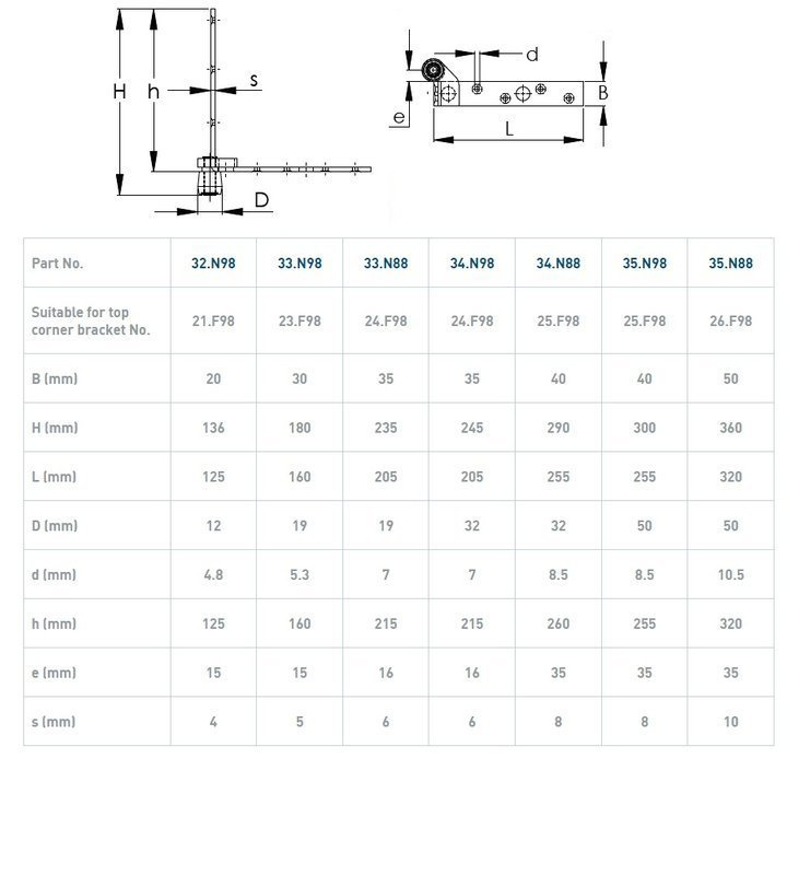 Dolny narożnik do skrzydeł drewnianych NIKO 33.N88, ocynk