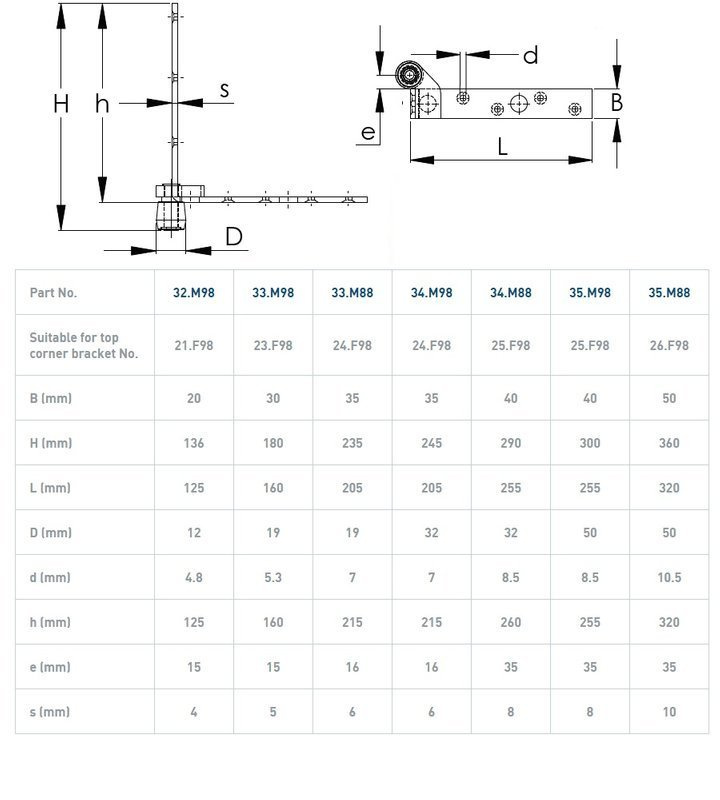 Dolny narożnik do skrzydeł drewnianych NIKO 35.M88, ocynk