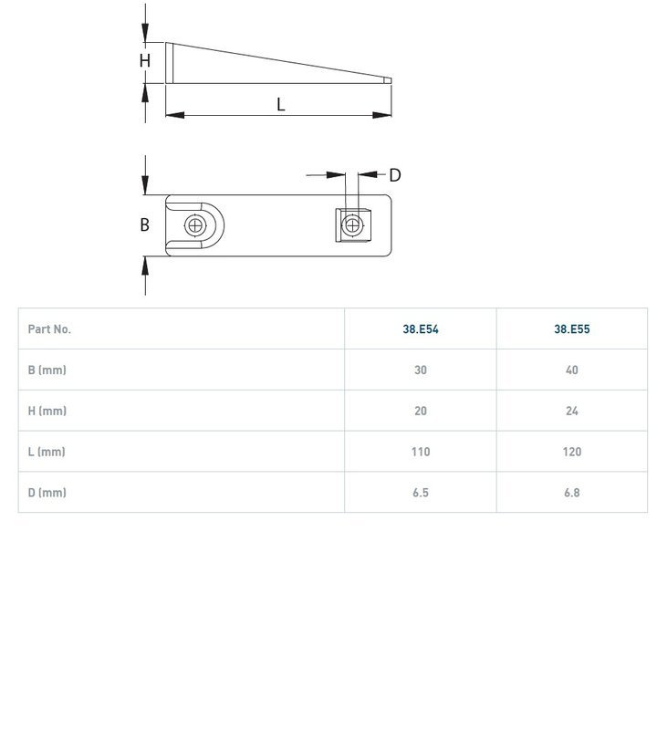 Nylonowy klin naprowadzający NIKO 38.E55 o długości 120 mm jest doskonałym rozwiązaniem do lekkich obciążeń, o wadze do 90 kg. Posiada wytrzymałą konstrukcję, która gwarantuje stabilność i bezpieczeństwo podczas użytkowania.