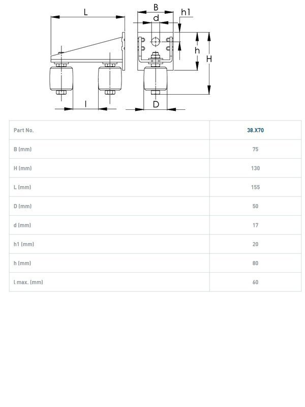 Konsola ścienna z dwoma rolkami prowadzącymi NIKO 38.X70