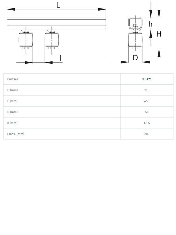 Podwójna nylonowa rolka prowadząca z szyną NIKO 38.X71