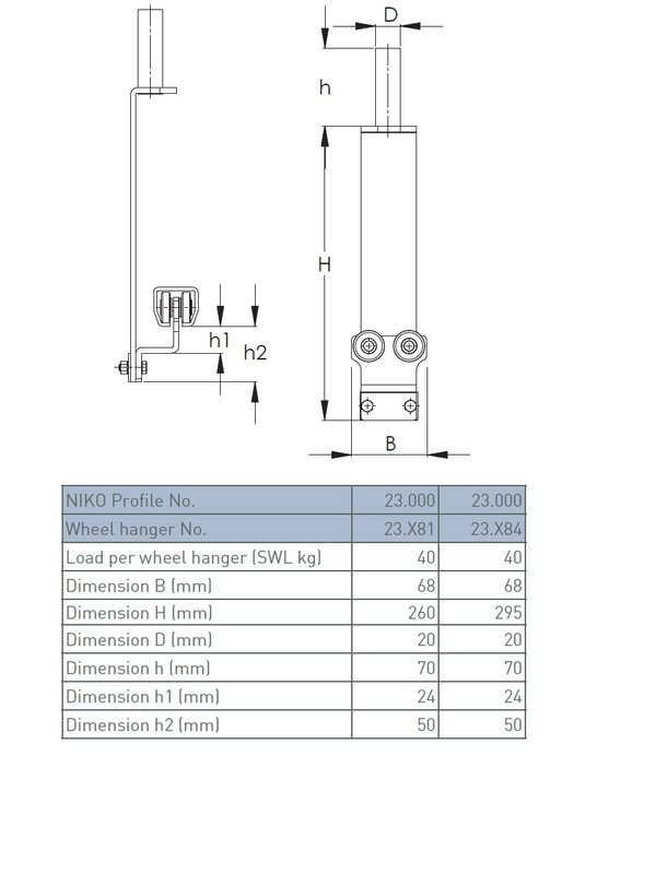 • Nośność 1 wózka (SWL) 40 kg.