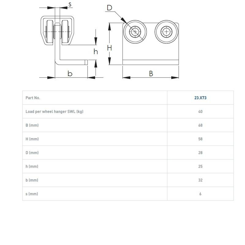 Wózek 4-kołowy do kurtyn samochodowych NIKO 23.X73, ocynk