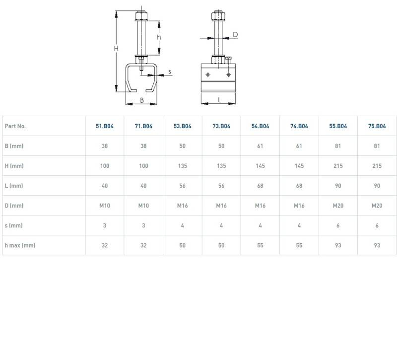Regulowany uchwyt szyny NIKO 54.B04, stal nierdzewna AISI 304