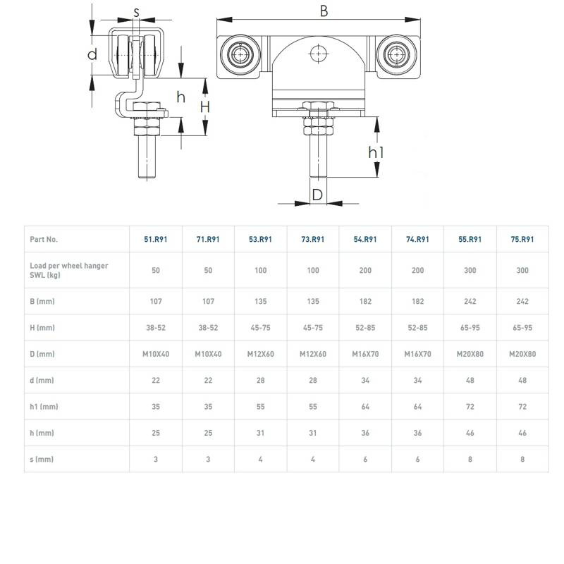 - Nośność 1 wózka (SWL) 300 kg.