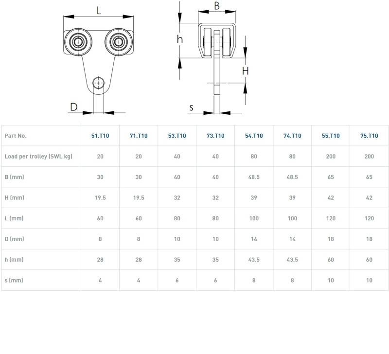 Wózek 4-kołowy NIKO 51.T10 wykonany jest z wysokiej jakości stali nierdzewnej AISI 304, co sprawia, że jest odporny na korozję i nadaje się do zastosowań w warunkach wilgotnych czy agresywnych środowiskach przemysłowych. Dzięki czterem solidnym kołom, zapewnia płynne i stabilne poruszanie się po szynie, co jest niezwykle istotne w przypadku transportu ciężkich ładunków.