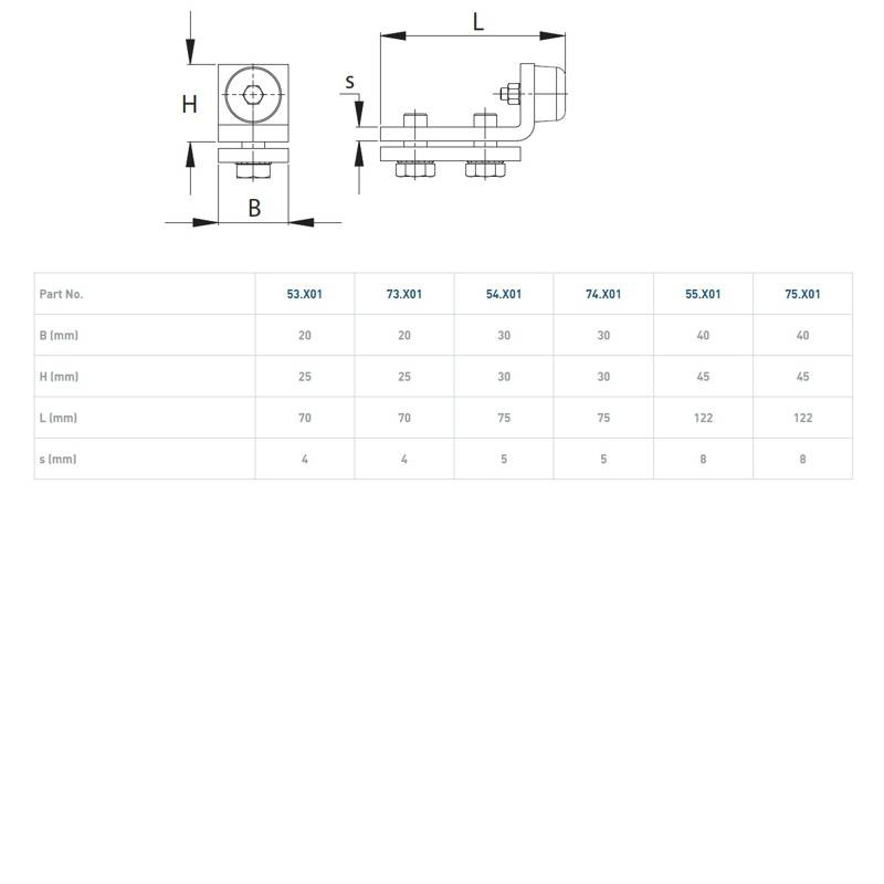 Stoper końcowy szyny NIKO 55.X01 wykonany jest ze stali nierdzewnej AISI 304, co gwarantuje odporność na korozję oraz trwałość w różnych warunkach atmosferycznych. Solidna konstrukcja zapewnia bezpieczne zatrzymywanie ruchomych elementów, co jest kluczowe dla efektywnego funkcjonowania systemu.