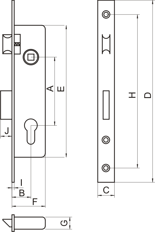 • Zamek zapadkowo-zasuwkowy, wąski 90/35 mm