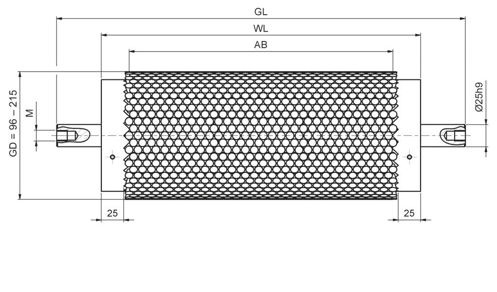 - GD - średnica całkowita na obwodzie włókien (96-215 mm)