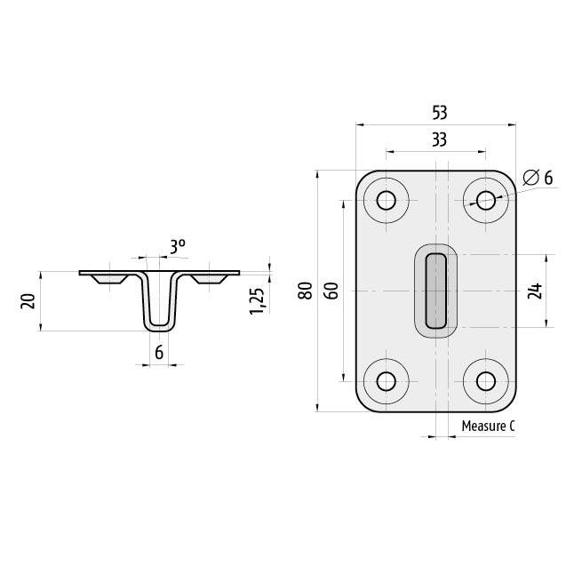 - Dolne, szerokie gniazdo do zasuwy drzwiowej typ "0" (otwór centralnie) / typ "2" / typ "4" (otwory nieosiowo).