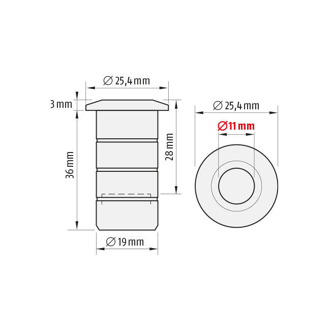 - Dwa rozmiary: Ø11/25 mm lub Ø11/40 mm