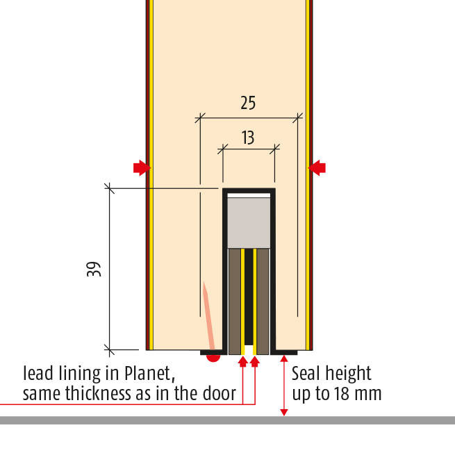 • ołowiane wkłady o grubościach 0,5 - 4 mm (należy wybrać uszczelkę z wkładem o tej samej grubości ołowianej płytki co w drzwiach)