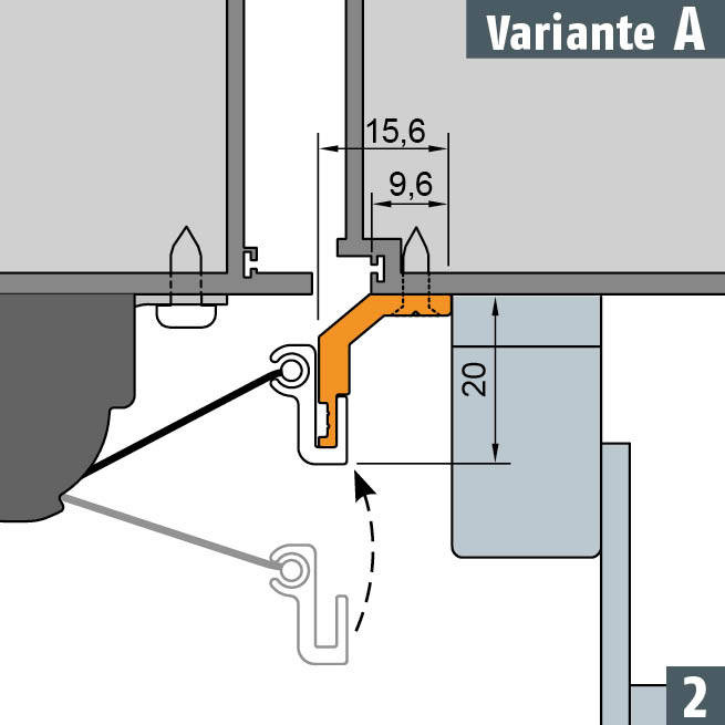 - dwa sposoby montażu: wariant A dla drzwi z małą ilością miejsca montażowego; wariant B dla drzwi bez miejsca montażowego (dźwignia zamontowana na skraju skrzydła)