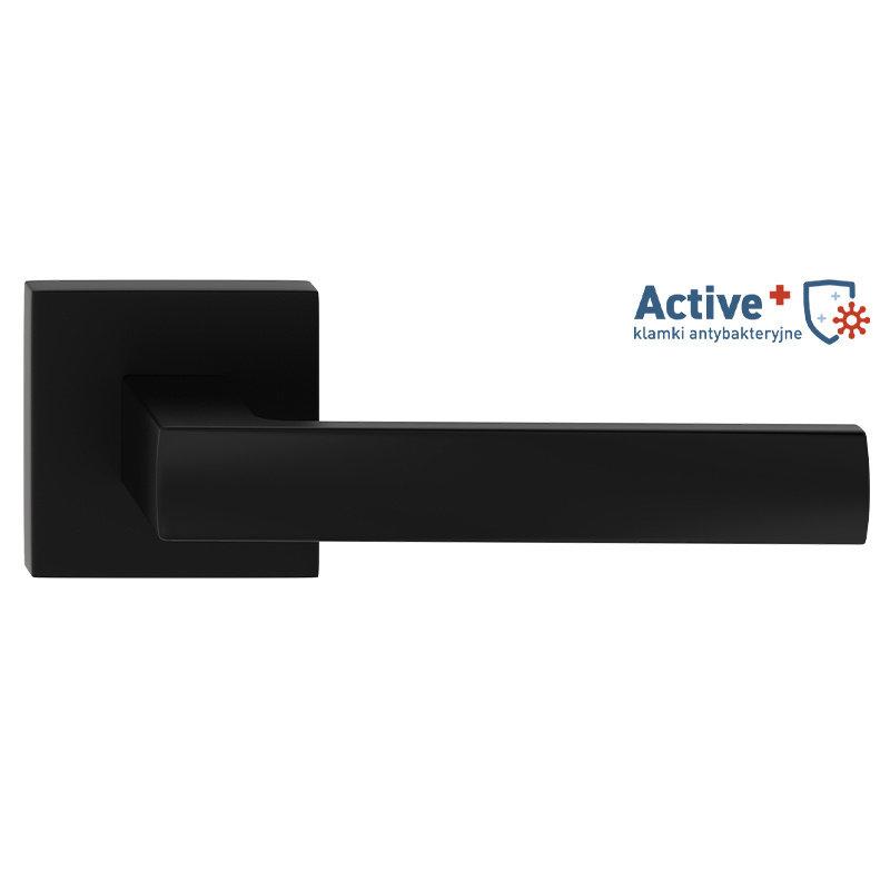 Klamka oferowana jest również z powłoką antybakteryjną ACTIVE+ (wyłącznie czarna) - dzięki specjalnej powłoce antybakteryjnej liczba zarazków na powierzchni rękojeści klamek pomiędzy cyklami czyszczenia i dezynfekcji jest znacznie zmniejszona. Ogranicza to ryzyko przenoszenia patogenów i skutecznie wspiera higienę przestrzeni gdzie zostały one zastosowane.