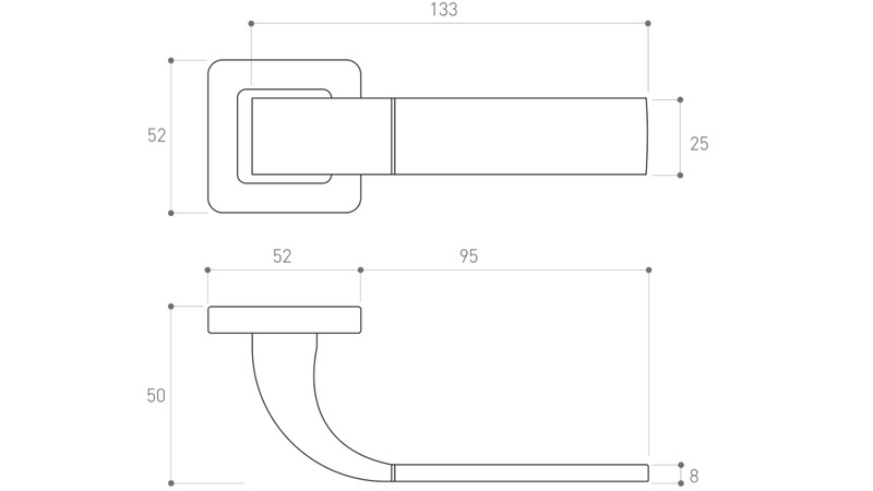 • Klamka drzwiowa na szyldzie kwadratowym.