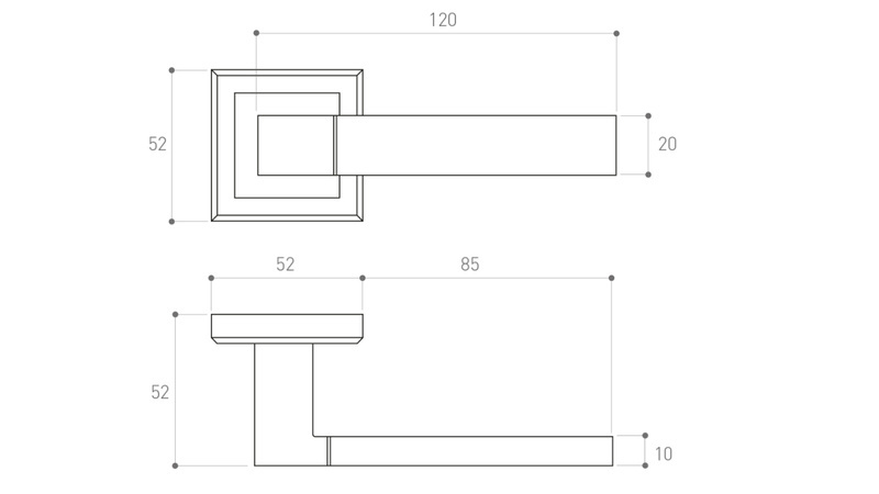 - Klamka drzwiowa na szyldzie kwadratowym.