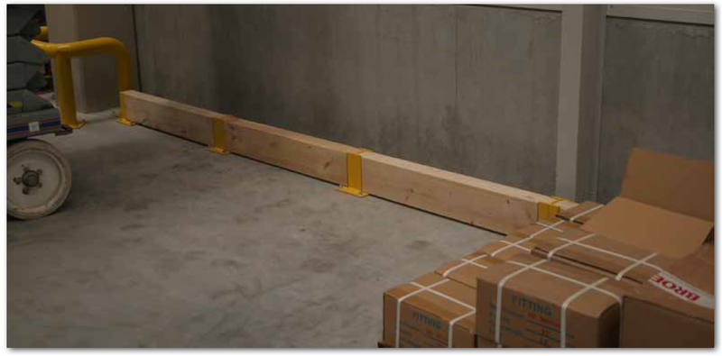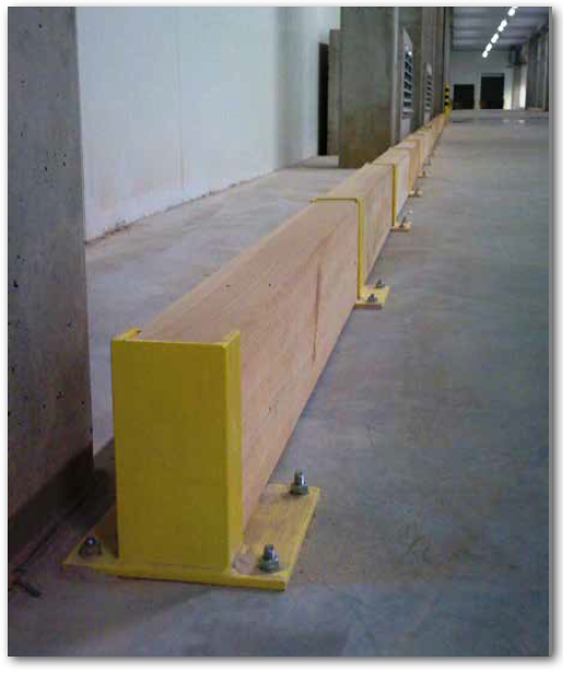 - Belka stosowana jako odbojnica drewniana, montowana do podłoża za pomocą stalowych elementów łączeniowych. Służy do ochrony ścian, maszyn, regałów i innych przedmiotów przed uderzeniami wózków widłowych.