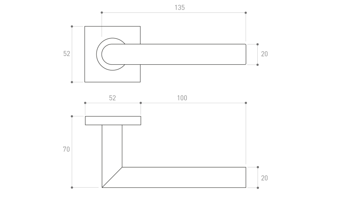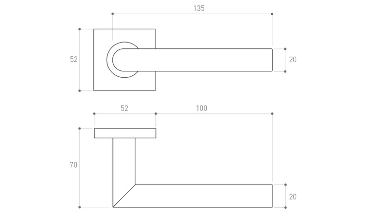 - Klamka drzwiowa na szyldzie kwadratowym.