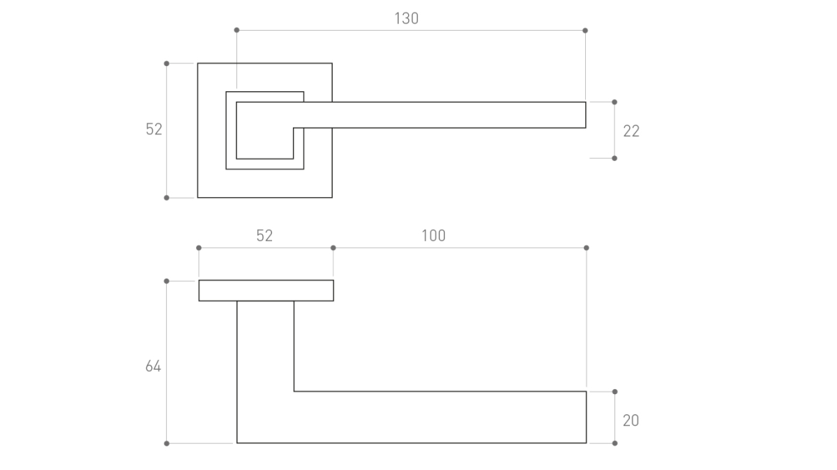 - Klamka drzwiowa na szyldzie kwadratowym.