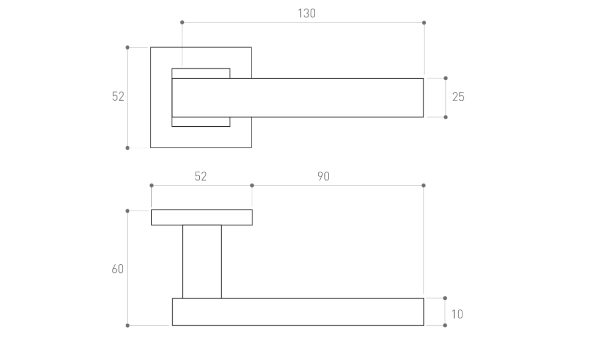 • Klamka drzwiowa na szyldzie kwadratowym.