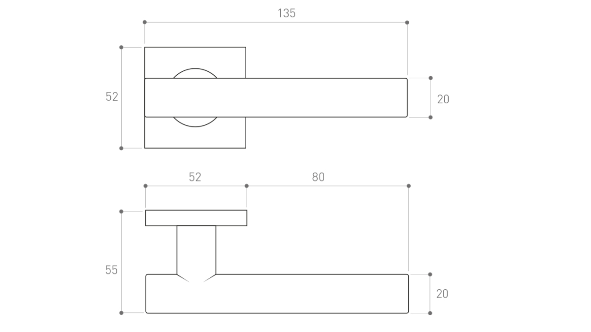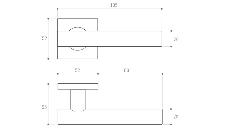• Klamka drzwiowa na szyldzie kwadratowym.