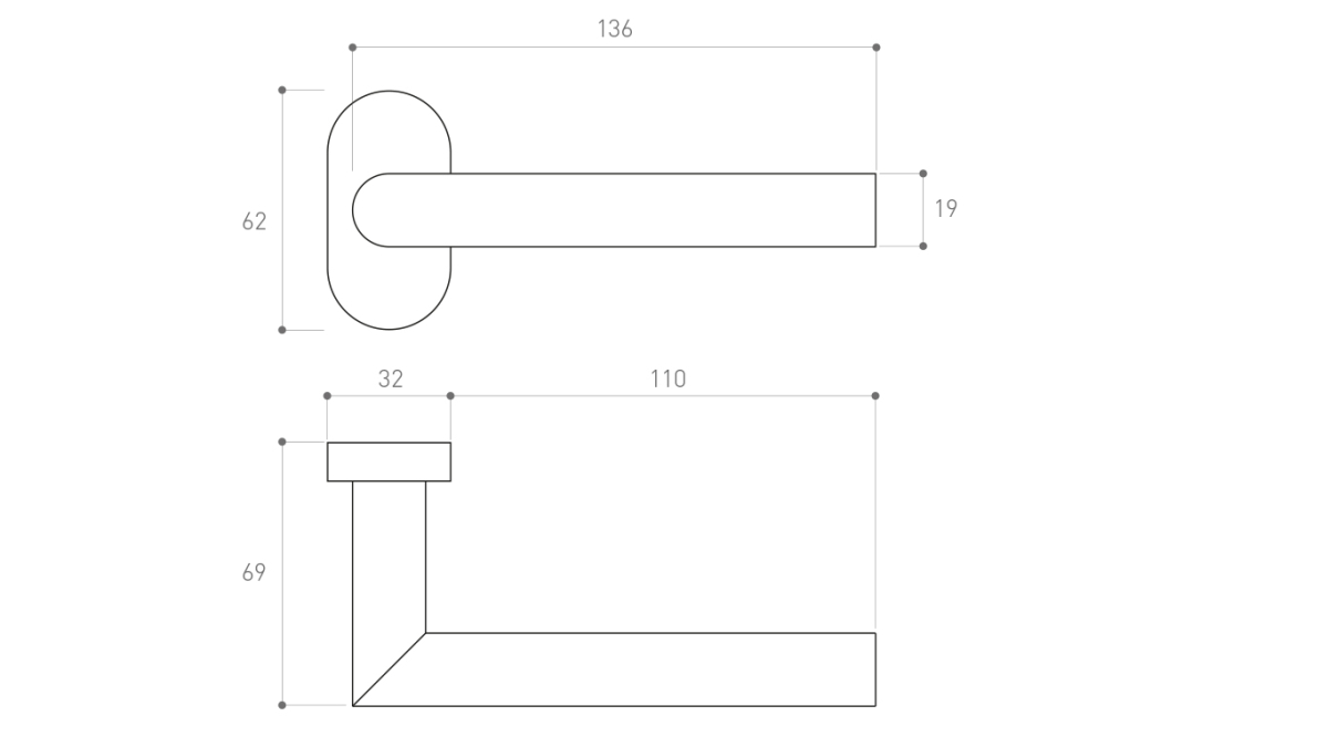 • Klamka drzwiowa na szyldzie owalnym.