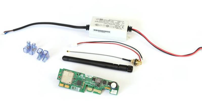 | antena | prętowa dookólna o zysku 3dBi zakończona wtykiem męskim SMA; (GSM-3G, prętowa łamana, 850/900/1800/1900/2100 MHz), przejściowy przewód antenowy zakończony żeńskim wtykiem U.FL i gniazdem żeńskim SMA. |