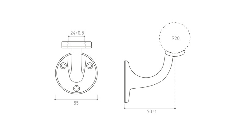 • Uchwyt do poręczy schodowych lub balkonowych wykonany ze stali nierdzewnej. Do wnętrz o uniwersalnym lub nowoczesnym charakterze. Nie zawiera elementów montażowych, może być przymocowany do ściany za pomocą wkrętów z kołkami rozporowymi. Max. Ø20 mm