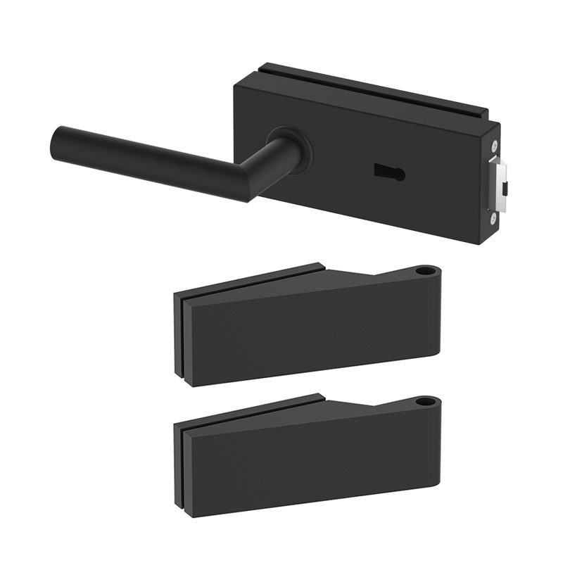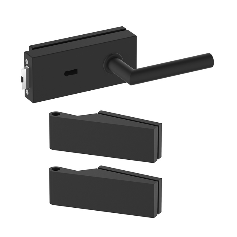 - Komplet okuć do drzwi szklanych o grubości 8 mm. Na klucz.