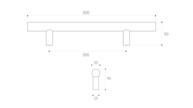 - Dwustronna, okrągła Ø35 mm, długość 500 mm - 1700 mm